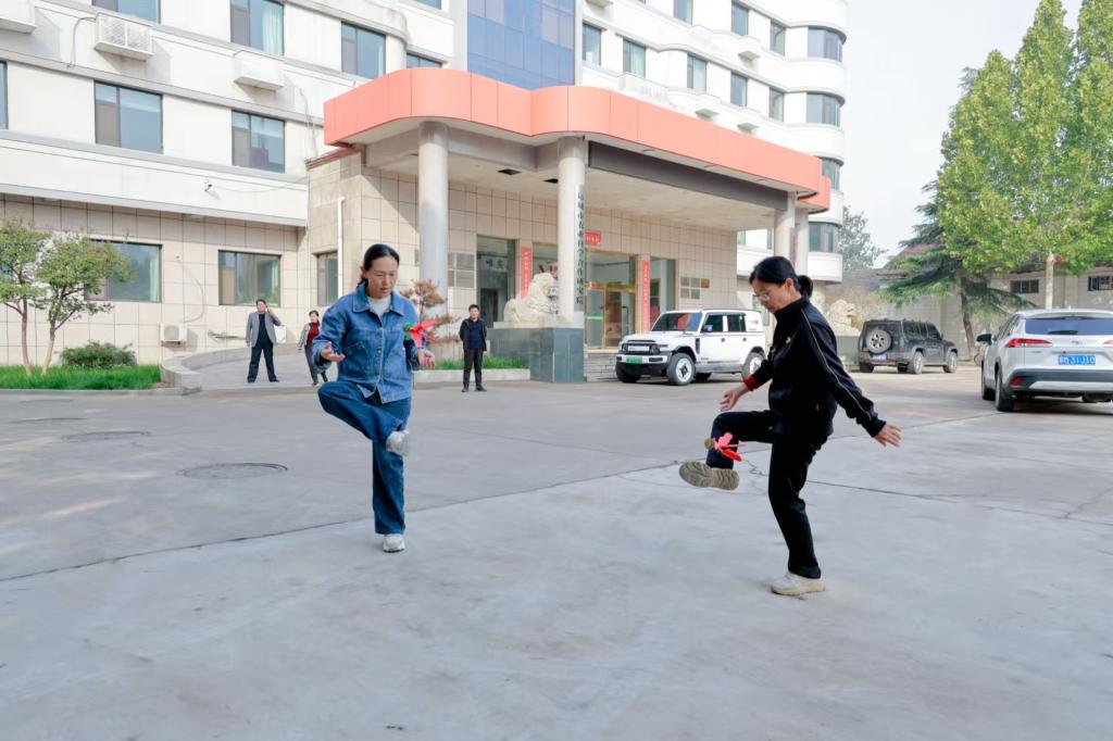 活动以健步走拉开序幕,所领导带队出发,步伐稳健,退休职工精神抖擞,谈笑风生,在职职工争先恐后,你追我赶,现场气氛热烈,秩序井然。集体跳绳队员们随绳影翻飞,腾跃如燕,活力四射,充分展现了团结协作、顽强拼搏的精神风貌。踢毽子选手身姿矫健,动作舒展优美,敏捷自如,毽子在脚尖飞舞灵动。滚铁环、打沙包环节充满欢乐与挑战,两人一组,默契配合,迅疾如风,乐趣横生,现场欢声笑语不断。投篮、飞镖、飞盘活动中,参与者全神贯注,巧妙发力,恰到好处,精湛的技术赢得阵阵喝彩。