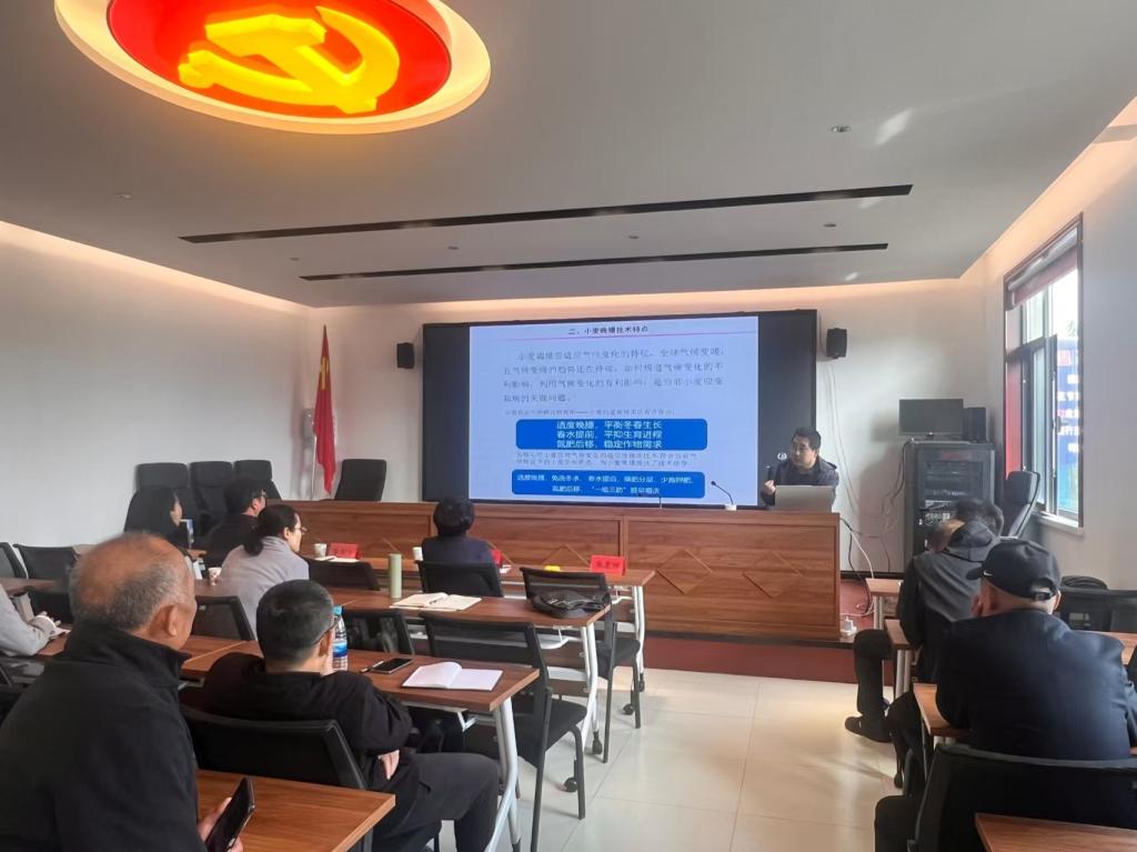 在随后开展的专题培训环节,三位主讲人分别从党建、技术和营销三个维度展开授课,形成“理论+技术+实践”的全链条赋能体系。运城市委党校柴英辉副教授以《新时代党建引领基层治理》为题,系统阐释了党建引领在基层治理与乡村振兴中的核心作用,为提升乡村治理能力提供了理论指导和实践路径。来自棉花所的王健则立足产业实际,作了《菊花与小麦轮作栽培技术》的专题讲解,他从土壤保育、病害防控、效益提升等方面深入浅出地介绍了轮作模式的技术要点与操作规范,为菊农解决连作障碍、实现稳产增收提供了科学依据。王雷以《用短视频电商与创意直播赋能乡村振兴》为题,结合鲜活案例,生动讲解了如何借助新媒体平台拓展农产品销售渠道、塑造地域品牌、传播乡土文化。他的分享为现场学员打开了“手机成为新农具,直播变成新农活”的数字化转型思路,激发现场强烈共鸣。