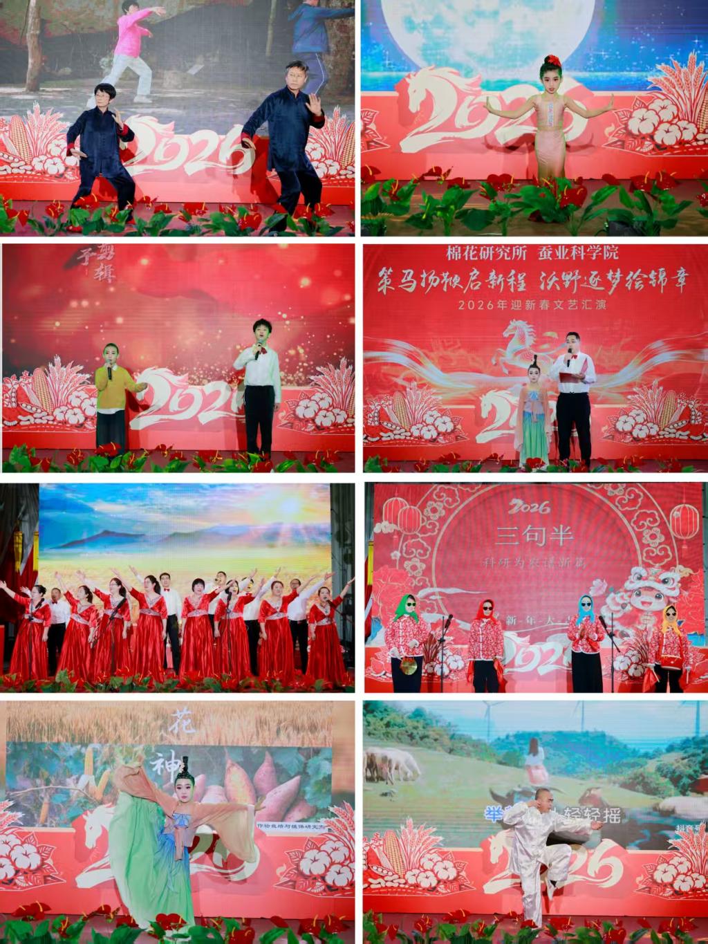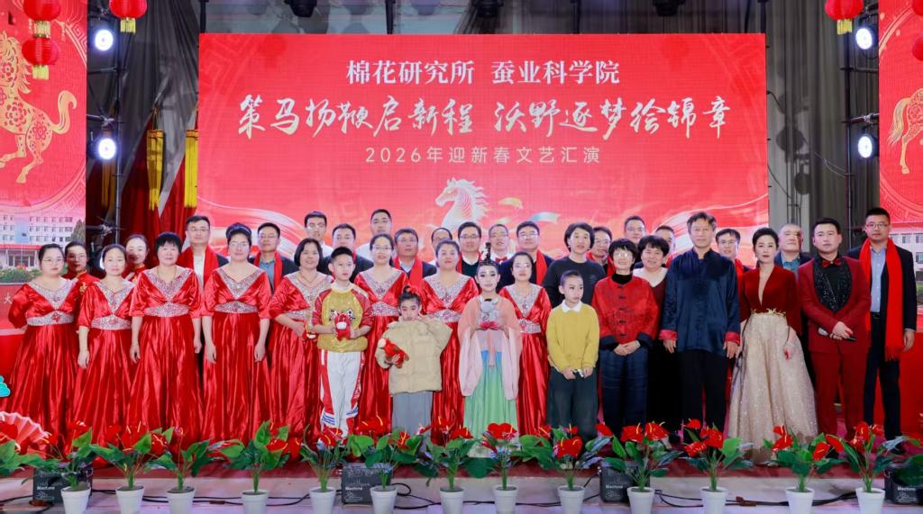 2月9日下午,棉花研究所、蚕业科学院联合举办2026年迎新春文艺会演,以“策马扬鞭启新程,沃野逐梦绘锦章”为主题,全体干部职工欢聚一堂,辞旧迎新、共话发展,现场气氛热烈祥和。