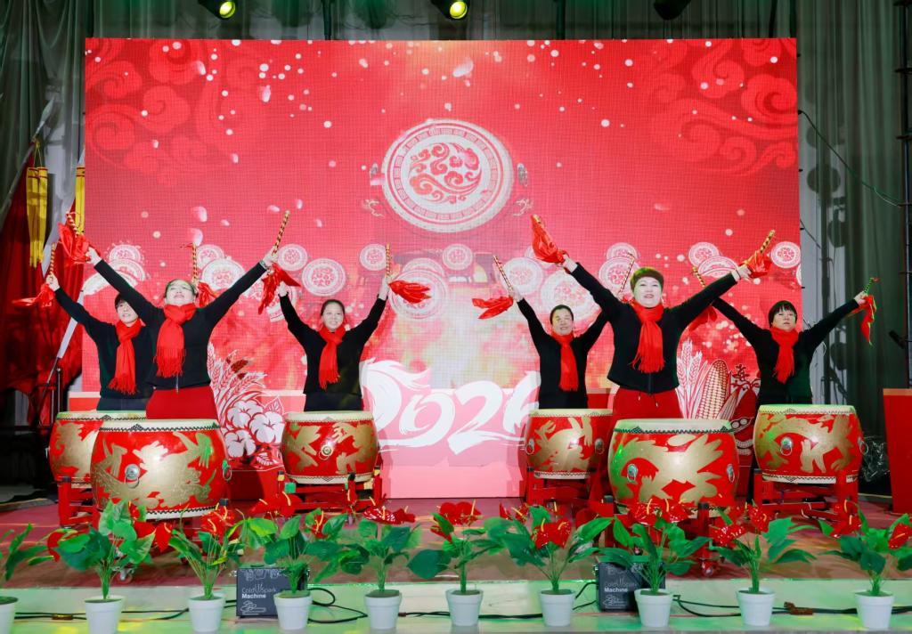 会演在绛州大鼓《红红火火闹新春》中拉开帷幕,激昂的鼓点点燃全场热情,充分展现了干部职工的精气神。整场汇演分为“驰马迎春·启新程”“沃野躬耕·逐梦行”“同心绘景·谱锦章”三个篇章,节目形式丰富、内容贴合实际,既展现了干部职工的多才多艺,更彰显了大家扎根农科、奋勇争先的精神风貌。