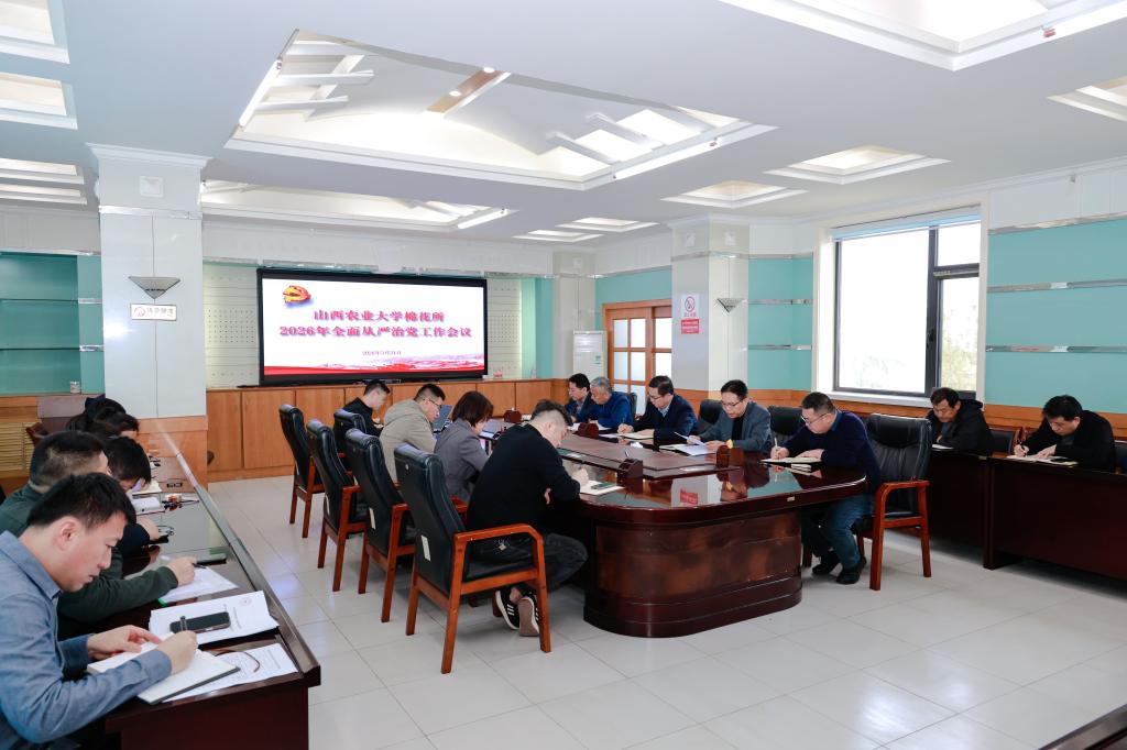 3月31日下午,棉花所召开2026年度全面从严治党工作会议,系统传达学习二十届中央纪委五次全会、省纪委十二届六次全会以及校党委全面从严治党工作会议等会议精神。所党委书记、所长李朋波安排部署年度重点任务。会议由所党委副书记李江辉主持。所班子成员、所属各党支部书记及各科室负责人参加会议。